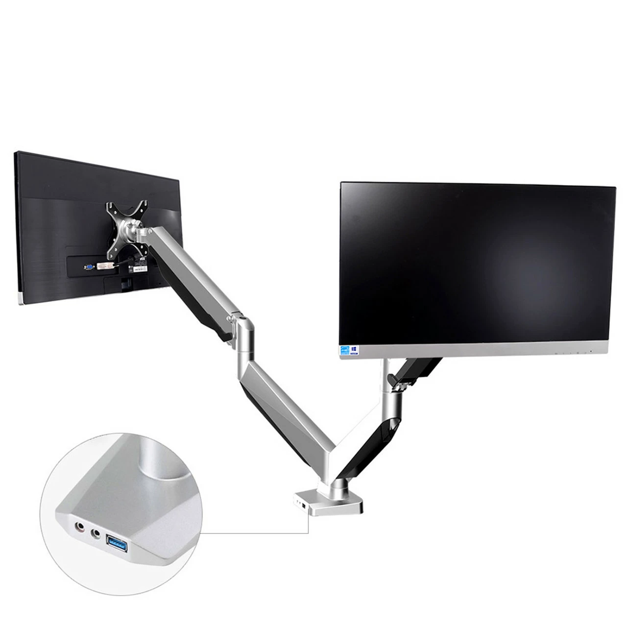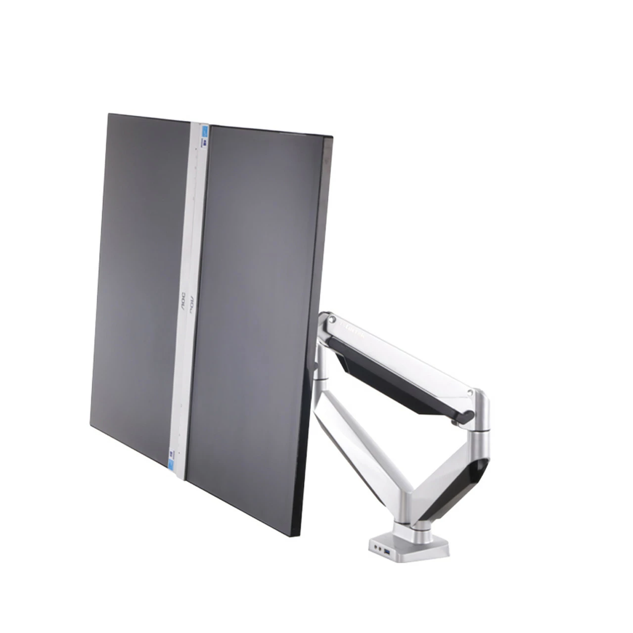 - Dual arms support 2 monitors