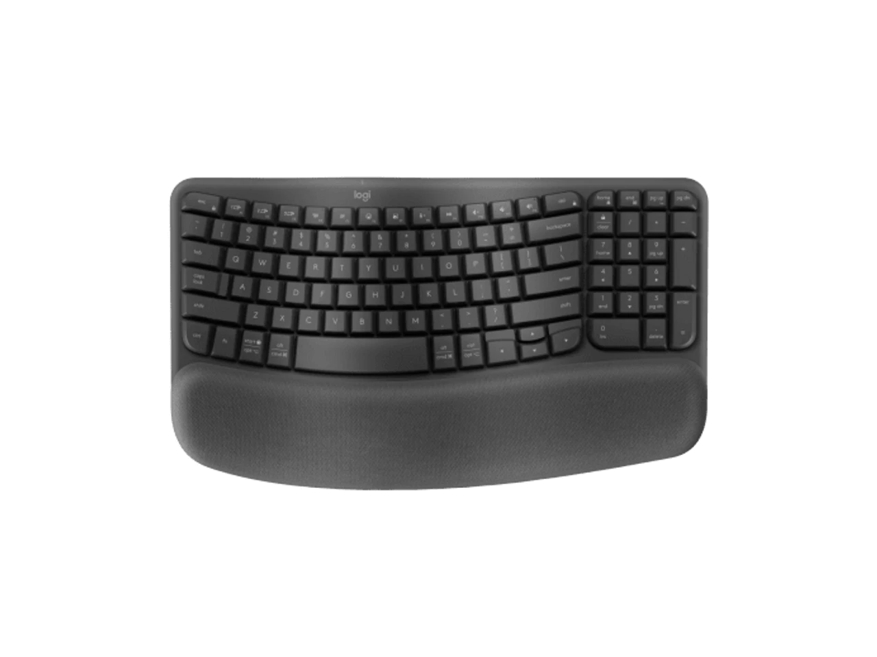 This compact keyboard’s wavy design places your hands, wrists and forearms in a natural typing position for daylong feel-good. - More palm support, less pressure.
